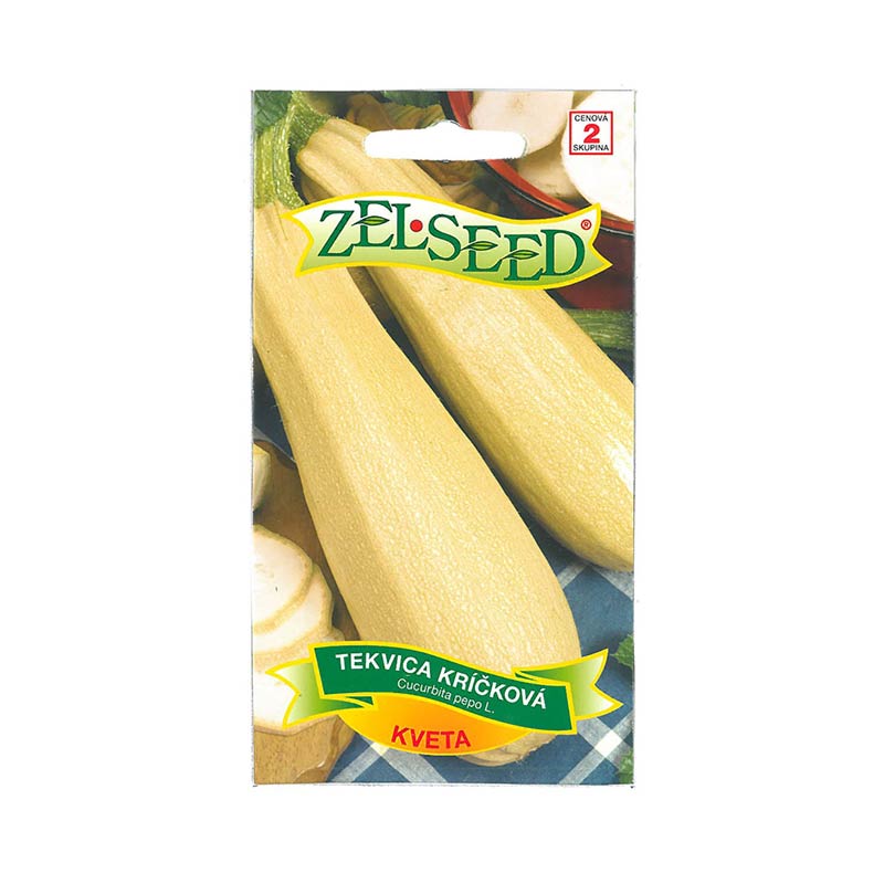 KVETA (Cucurbita pepo L.) je kríčková, lahôdková tekvica. Plody sú valcovité, v technickej zrelosti zelenavo biele až žlto biele, v botanickej zrelosti žlté až krémovo žlté. Dužina je žlto biela, hustá, šťavnatá. Priemerná hmotnosť plodu je 1,5 kg. Vegetačná doba je 70 dní, zo 100 m2 môžeme pozbierať 600 – 650 kg plodov. Zberáme postupne od júla do septembra mladé plody alebo plody v technickej zrelosti, ktoré môžeme kuchynsky upraviť. Spon 120 x 80 cm, 100 x 100 cm.