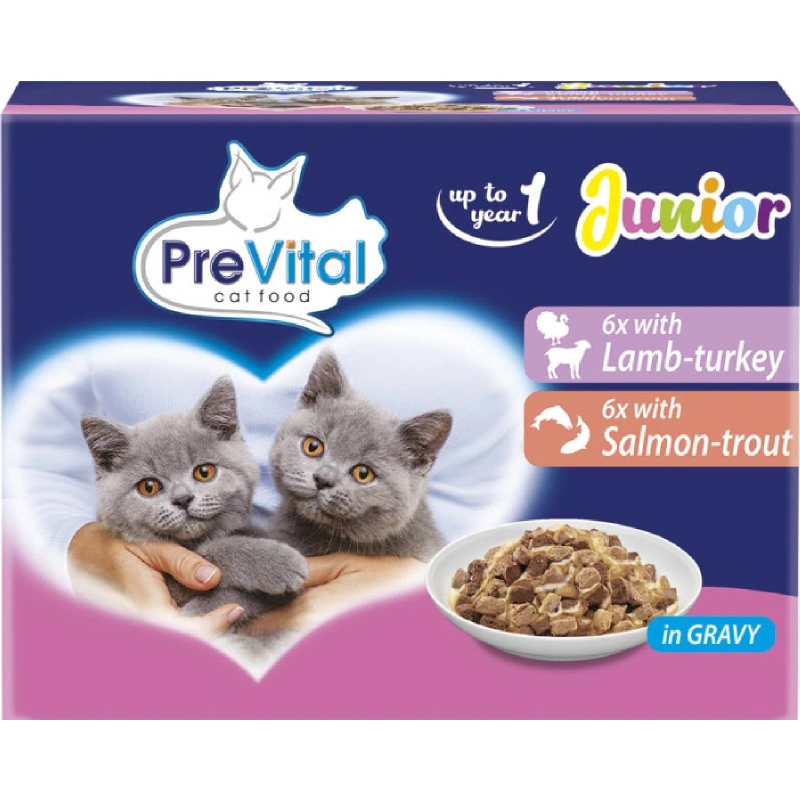 - PreVital Mačka jahňa morka losos pstruh junior v omáčke 12 x 100 g